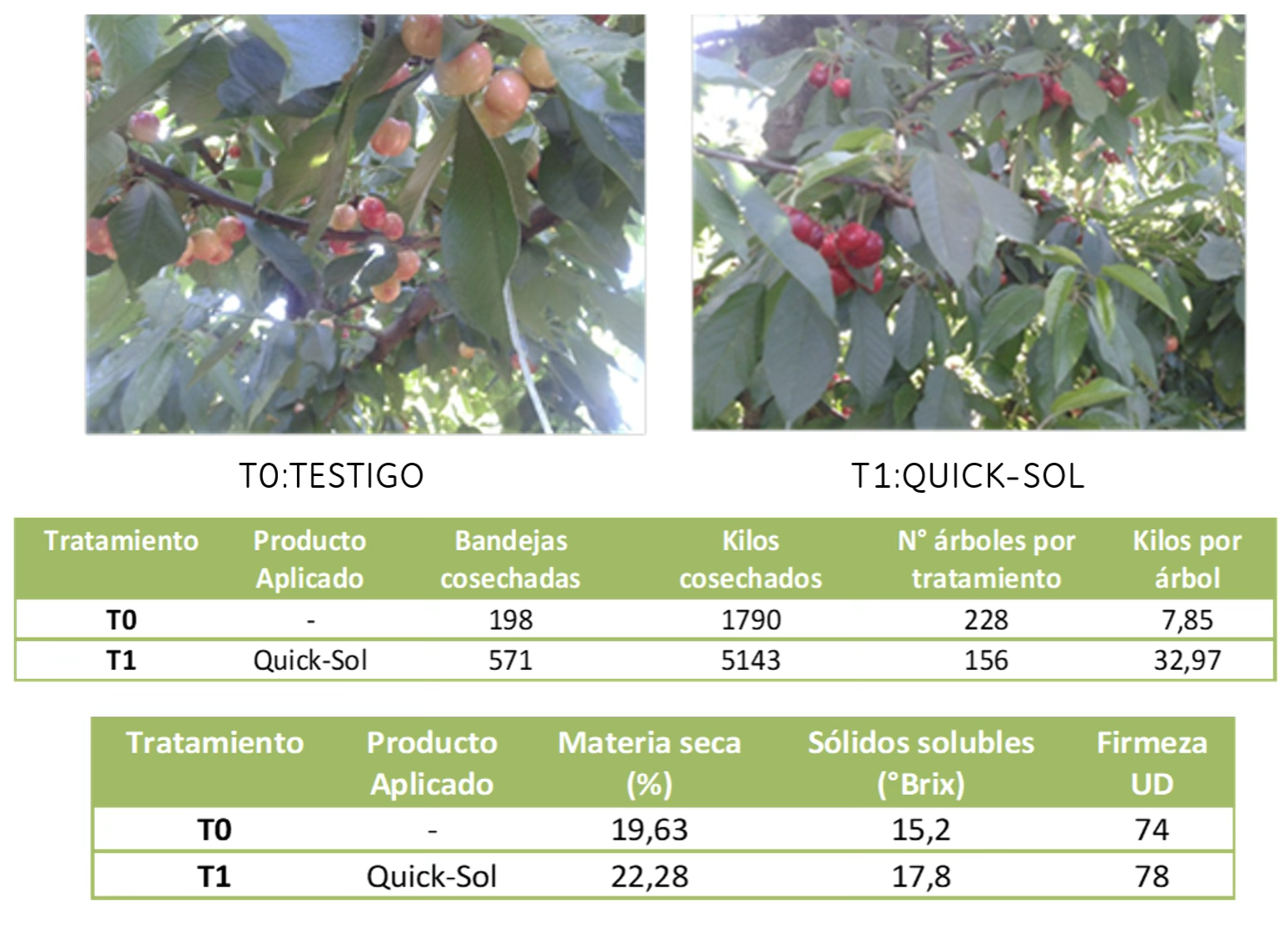 - Ensayo de aplicación de Quick-Sol sobre el color y calidad de fruta en Cerezo var. Brooks